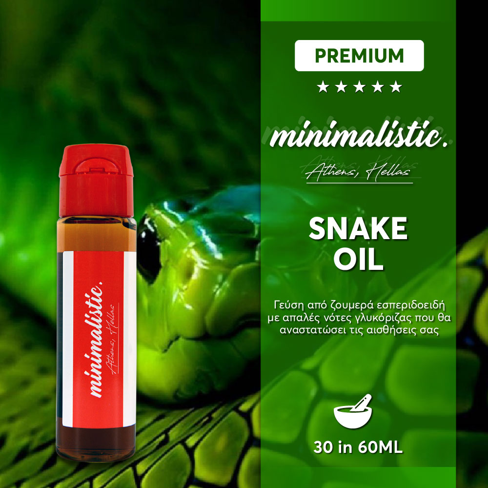 Βλέπετε πολλά υγρά γεύσης εσπεριδοειδών εκεί έξω, αλλά ποτέ δεν σας λένε τι περιέχουν- όχι ποτέ, αλλά η συντριπτική πλειοψηφία δεν το κάνει. Όχι αυτό το υγρό όμως, όχι το Snake Oil. Αυτό που έχουμε εδώ, κυρίες και κύριοι, είναι ένα ελαφρώς δροσερό μίγμα φρούτων με μανταρίνι, λάιμ, πορτοκάλι, αχλάδι, φράουλα, λεμόνι και γλυκόριζα. Θεϊκό, έτσι δεν είναι; Ένα καταπληκτικό επίτευγμα των ατμιστικών παρασκευών, το Snake Oil είναι θέμα ομαδικότητας. Εεε τι; Ομαδικότητα στο υγρό; Ναί. Δεν είναι δύσκολο να “πετάξουμε” μαζί διάφορα εκχυλίσματα και να το ονομάσουμε υγρό για άτμισμα, αλλά είναι δύσκολο να πάρουμε ένα καλό αποτέλεσμά από αυτό. Το Snake Oil είναι πολύ περισσότερα από τα εκχυλίσματα που περιέχονται σε αυτό, αυτή είναι η ομαδικότητα για την οποία μιλάμε: το πώς το σύνολο, είναι ΠΟΛΥ μεγαλύτερο από τα μέρη του. Αρπάξτε μερικά μπουκάλια αν έχουμε απόθεμα, παιδιά!